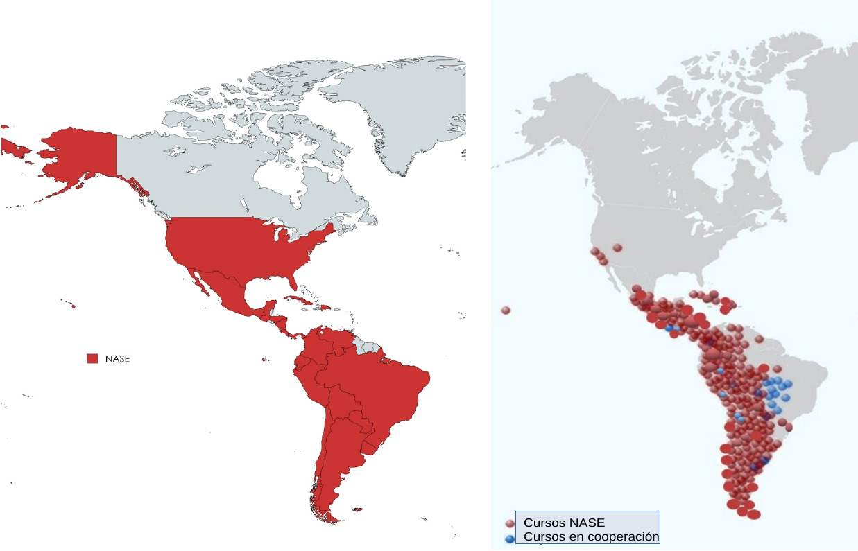 En America Latina NASE ha llegado a 19 países y ha desarrollado 235 cursos (de un total de 500 en todo el mundo),  ha organizado 41 Grupos Locales, entrenado a mas de 8600 docentes en el continente y el número los voluntarios, docentes involucrados y alumnos que en algún momento de su trayectoria escolar experimentaron con actividades de NASE se incrementa de manera constante.